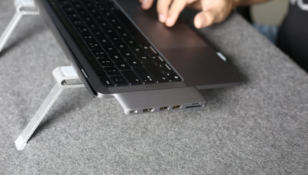 我的擴充套件塢和支架是在上一個618在綠聯打包購買的,支架能將MacBook抬高一些,眼睛看螢幕和使用鍵盤會更舒適一些。