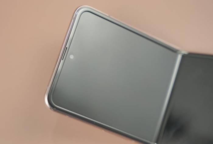 同時,筆者在觀察該機外觀時發現,三星Galaxy Z Flip 5G的螢幕黑邊框是微微高於螢幕一點點的,通過這種方式,在閉合該機時,邊框部分的設計避免了兩塊螢幕的直接接觸,更好地保護了螢幕,增加了耐用性。